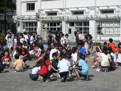児童集会で、“猛獣狩りに行こうよ!”の遊びを全校で行いました。