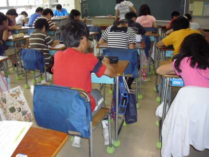 5年生の教室では、“国語:聞く・話すテスト”・・・学習したことを思い出しながら、考えて取り組んでいました。