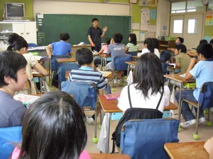 5年生の教室では、今日の予定・・・“不審者対応訓練”の話などを・・・。