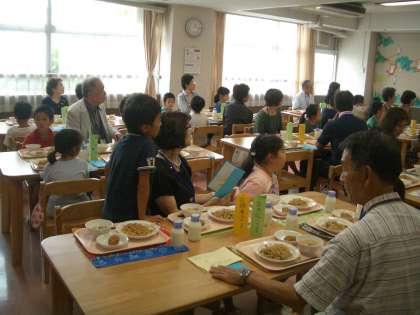 その後、子どもたちは一緒に給食を食べていろいろな話を聞きました。