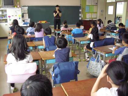 2年生の教室では、“昨日の研究授業”で2年生が学習課題に真剣に取り組んでいたことを九品仏小の先生方・・・講師の先生にほめられたこと、がんばっていたことを話し、全員の頑張りにたいして、拍手をし合いました。