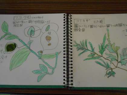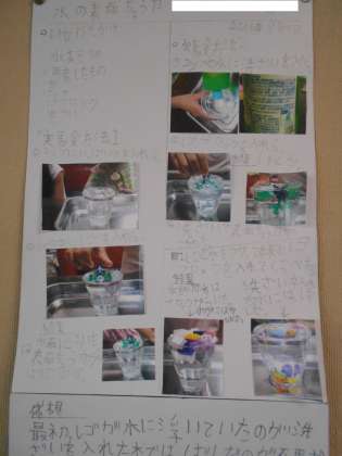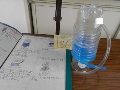4年生の夏休みの自由研究の作品を紹介いたします。上の写真の「ざっ草図かん」は、草の種を顕微鏡で観察するなど丁寧な作品です。中の写真の「水の表面ちょう力」の実験は、妹たちにも手伝ってもらうなど楽しさが伝わってきます。下の写真の「ペットボトル温度計」は、身近なもので役立つものをつくる工夫が素敵です。