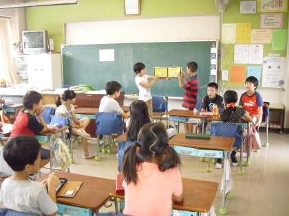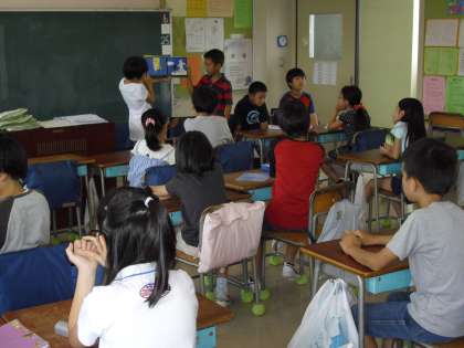 4年生の教室では、係の子ども達による“読み聞かせ”をしていました。保護者のよき聞かせグループ(LアンL)の読み聞かせを受けているので・・・読み手の工夫も4年生なりにできたいました。