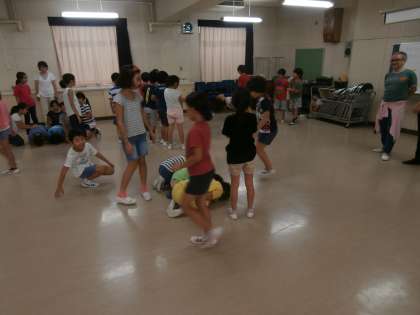 今日は世田谷パブリックシアターの方に遊びを通して、学芸会の表現に役立つことを教えていただきました。