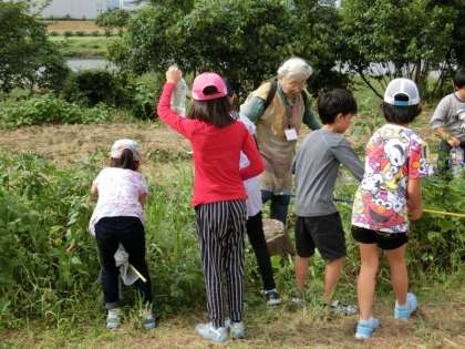 すばやく飛び回るトンボに苦戦したり、バッタの顔を間近で観察したりと、多くの虫と接する良い機会となりました。