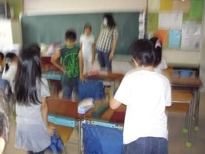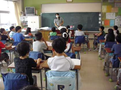 4年生の教室では、香港からの転入生の紹介・・・先生の話・・・と朝の会を行なっていました。