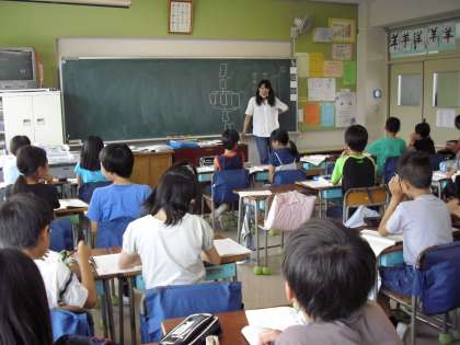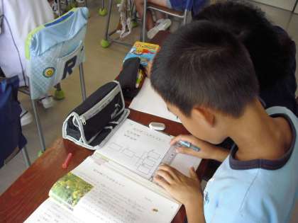 4年生の教室では、“国語の学習”ノートのまとめ方をしっかり書きとめていました。