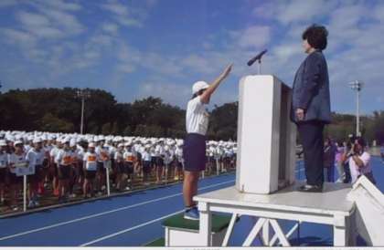 世田谷区立小学校の6年生が集う連合運動会は3日間に分かれて開催されます。九品仏小学校は初日のグループで、選手宣誓と国旗・大会旗掲揚の大役の当番校でした。選ばれた子どもたちは、見事に役割を果たしました。