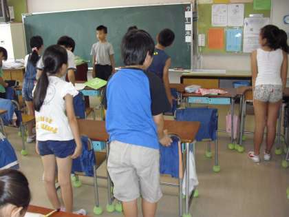 4年生の教室では、朝の会であいさつをしているとことろです。