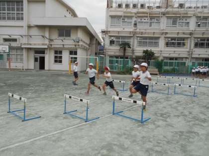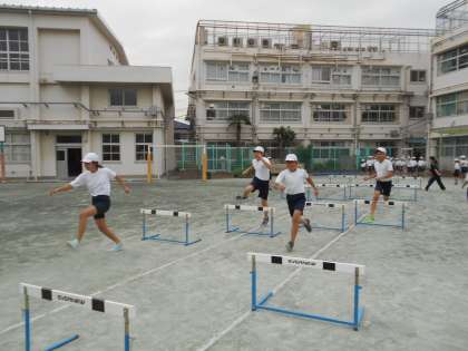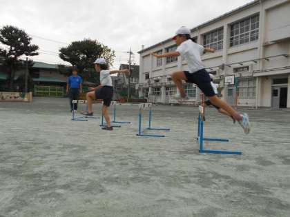 5年生が若駒のようにハードルを越えていきます。とても軽やかです。先日、オリンピック・パラリンピック教育で講師としておいでいただいた内藤選手のアドバイスが生かされています。