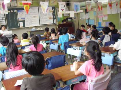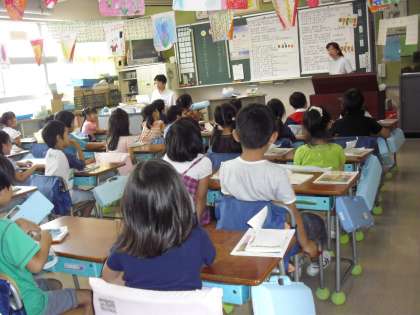 1年生は、“音楽”専科の先生の指導を受けています。小規模校のよさの一つです。