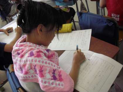 5年生は、まとめのテスト・・終わった子どもは、“川場移動教室”のまとめ・・・