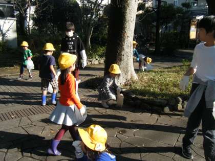 午後からはお天気に恵まれ、1年生と6年生は、浄真寺参道と九品仏公園のごみ拾いに行きました。