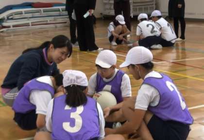 今日は6年1組が世田谷区小学校教育研究会の学級経営部の研究授業として、「作戦を工夫して全員が活躍しよう」をめあてに掲げ、「アタックプレルボール」のゲームに取り組みました。講師の先生は、6年生が低学年のときの親子スポーツでお世話になった国士舘大学の細越先生で、みんなの成長に驚いていました。