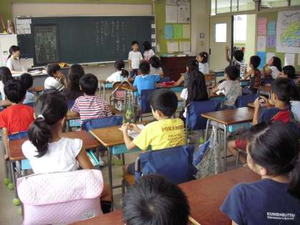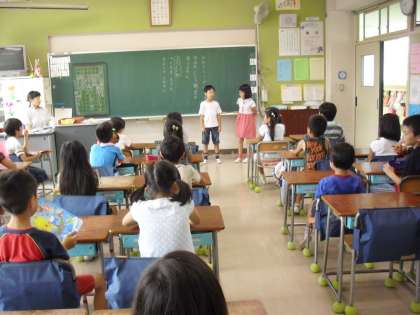 2年生の教室では、“朝の会”1分間スピーチで、ご飯を食べたことを話していました。