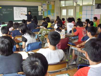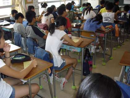 5年生の教室では、“日光の計画の確認”・・・そのあと、7月の人核の完成を目指して“良 心”について自分の考え、取組みなどをカードに書いていました。