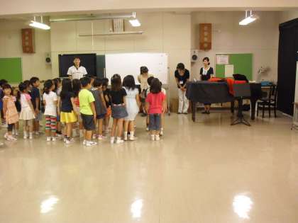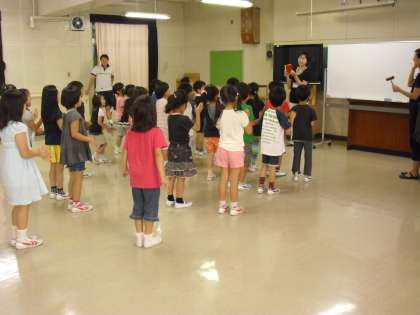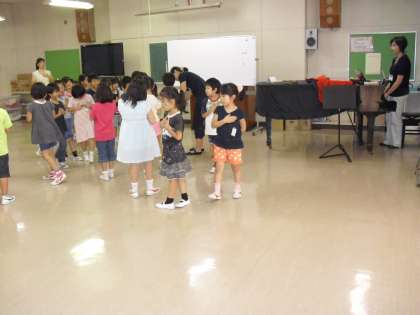 1年生は、“リトミック”・・・ゲストティチャーを迎えて、担任と音楽専科の先生で行っていました。
