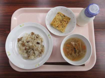 【献立】 まめまめごはん 牛乳