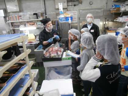 店員さんがが商品を買いやすいように加工をしているところ、商品が種類ごとに並べられているところなどを見せていただきました。