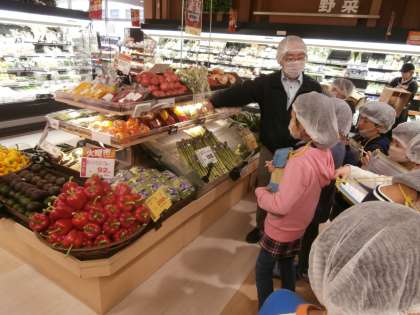 今日は社会科の学習でスーパーマーケットの見学に行きました。