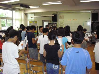 6年生の1時間目の学習は、“音楽の学習”です。発声練習から、はじめって、“歌よ ありがとう”の曲の合唱をしていました。