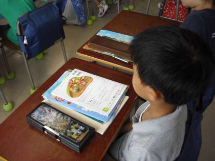 2年生の教室では、“朝の会”・・・・1時間目の準備もできています。