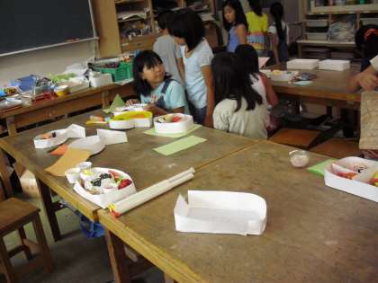 4年生は、1・2時間目は、“図工の学習”です。いろいろな材料を使って、お弁当づくり・・・色紙や絵の具などで装飾をしていました。