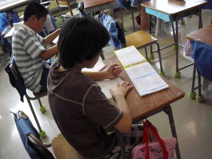 5年生の教室では、“朝 漢字テスト”・・・“継続は、力なり”・・・真剣に取り組んでいました。早くできた子は、提出していました。