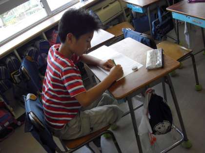 5年生の教室では、“朝 漢字テスト”を行っていました。真剣に取り組む子・・終わって提出する子などなど。