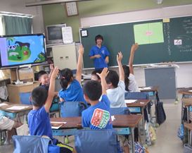 先生は普段より、子どもたちが学習課題をより身近に感じられるように導入を工夫して授業を展開している。授業への期待感をもたせ、意欲的に学習に取り組ませる努力を惜しまない熱意が子どもたちにも広まっているのが感じられた。