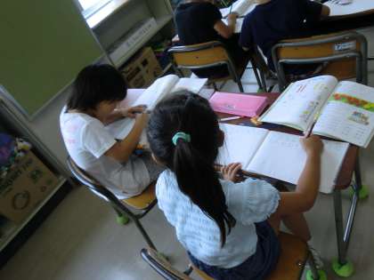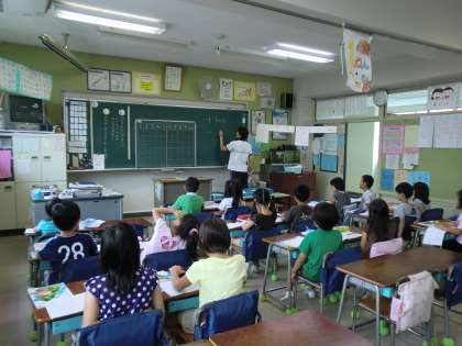 1年生は、“算数:少人数指導:たし算・ひき算”の学習・・・担任の先生は、+・−の記号の意味や使い方を繰り返して指導していました。