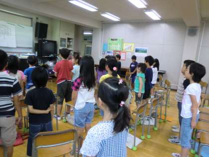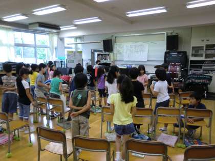 3年生は、“専科授業:音楽の学習”です。みんなとあわせて合唱をしていました。