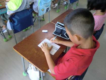 4年生は、“国語:漢字テスト”・・・練習してきた字を丁寧に書いていました。