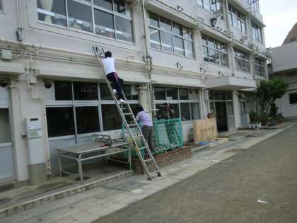 7月13日(火)緑のカーテン準備 主事さんの活躍