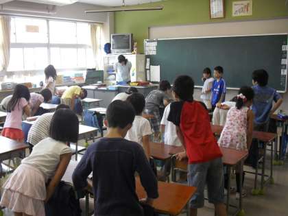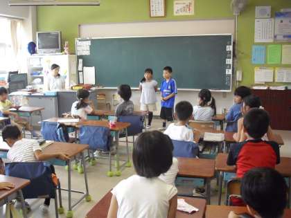 2年生は、朝の会・・・・日直の話は、“食事の子と”・・・。