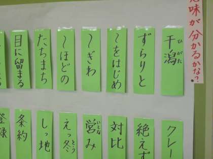 掲示には、国語で言葉調べたをしたことが掲げれています。