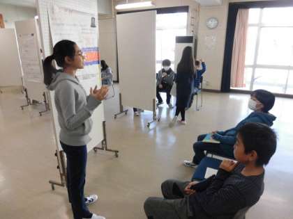 今日は、ポスターにまとめたことをパネルに張り、ポスターセッションを行いました。