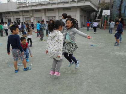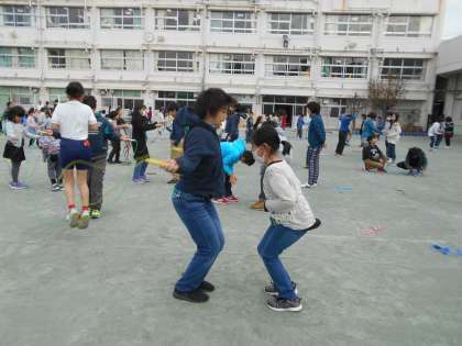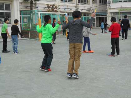 毎週火曜日は、全校で運動を楽しみます。2学期最後は2人で跳ぶ縄跳びに挑戦しました。