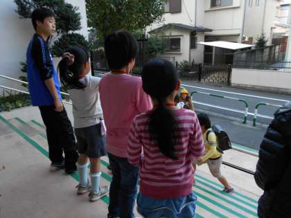 九品仏小学校では、代表委員や学年の当番が玄関で登校してくる人に元気よくあいさつをしています。3学期は寒さが厳しいですが、北風に負けずに頑張ります。