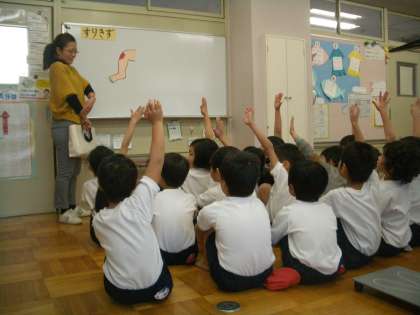 本日、1・2・3年生の計測を行いました。計測前に子どもたちは、養護教諭からけがの処置について教わりました。毎回、計測をするときには、テーマを決めて保健指導を行っています。
