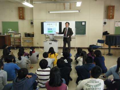 税理士の方をゲストティーチャーにお招きして、税について教えていただきました。「ヒゲ税」や「独身税」など、世界のおもしろい税について紹介していただいたり、税金がどのようなことに使われているか教えていただいたりしました。