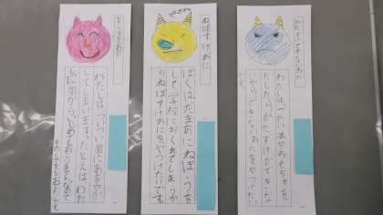 子どもたちは豆まきをしながら、心の中の自分の嫌な鬼を外に出すことが出来ました。