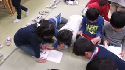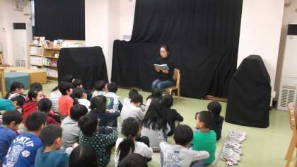 子どもたちは、「ゆきむすめ」「さるのオズワルド」の絵本を読んでもらったり、「屋根がチーズでできた家」の朗読を聞いたりしました。