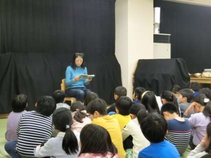 絵や写真のない朗読でも、話をよく聞いて、物語を想像していました。公共図書館からたくさん本を借りてくださったので、読み聞かせの後、「ふゆめがっしょうだん」の写真絵本を近くでながめていました。