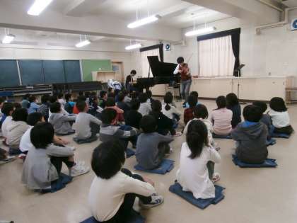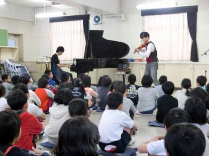 2月7日にエバリーの2人の方が来て、バイオリンとピアノの演奏をしてくださいました。