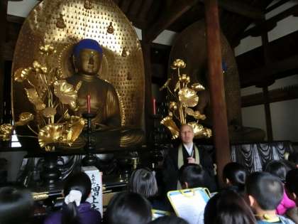 3年生は総合「九品仏の町を知ろう」の学習で、浄真寺に見学にいきました。浄真寺の方から、自然や行事、建物や仏像の意味などを教えていただきました。昔から大切にされている文化財がたくさんあることが分かりました。