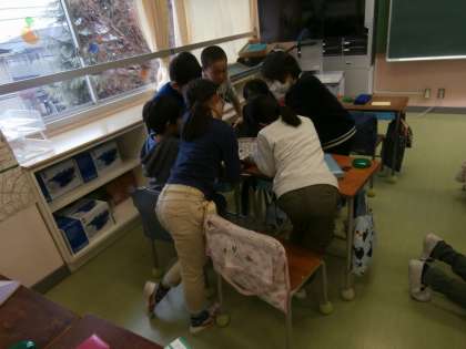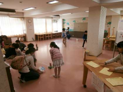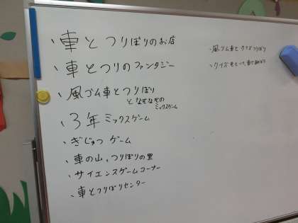 2月17日の子どもフェスティバルで、3年生は「カプセルの山 車の里」という出し物ゲームを学年合同でしました。理科の学習で使った風、ゴムで走る車、磁石でみんなに楽しんでもらえるゲームを考えました。各クラスの代表委員が話し合って、2クラスのアイディアをまとめて準備を進めてきました。他のクラスの友だちとも協力して仕事ができました。
