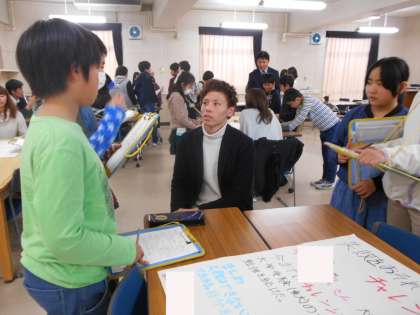 5年生は2月22日の総合的な学習の時間で、本校出身の高校生・大学生の先輩9人の来ていただき、さまざまな質問に答えていただきました。