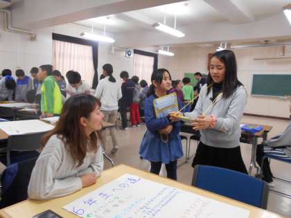 5年生は2月22日の総合的な学習の時間で、本校出身の高校生・大学生の先輩9人の来ていただき、さまざまな質問に答えていただきました。