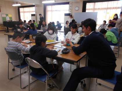 5年生は2月22日の総合的な学習の時間で、本校出身の高校生・大学生の先輩9人の来ていただき、さまざまな質問に答えていただきました。